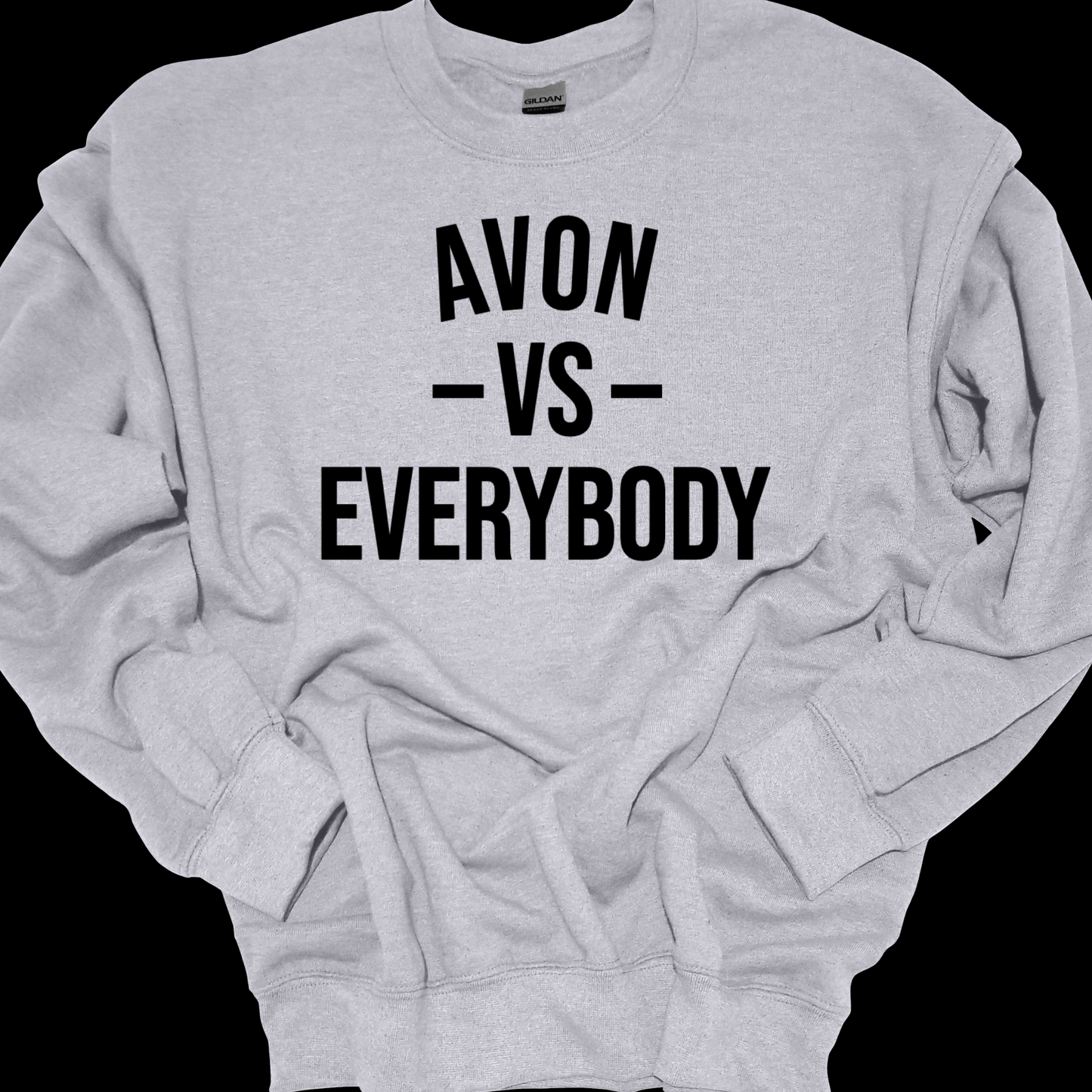 Join the AVON squad with our AVON VS EVERYBODY Crewneck Sweatshirt. Show your loyalty and style in this comfortable, versatile piece. Perfect for wearing to TOURNAMENTS, parties, or just lounging around. It's a must-have for any true AVON fan!